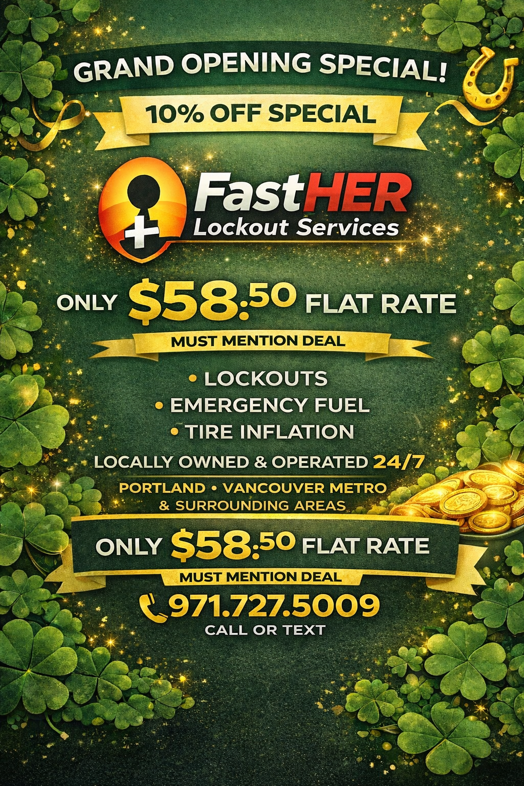 FastHER Lockout Services is a local, woman-owned, Native-owned, mobile-only roadside assistance company serving Portland and the surrounding metro area. We’re celebrating our grand opening with special promotional pricing on fast, damage-free lockouts and roadside services.